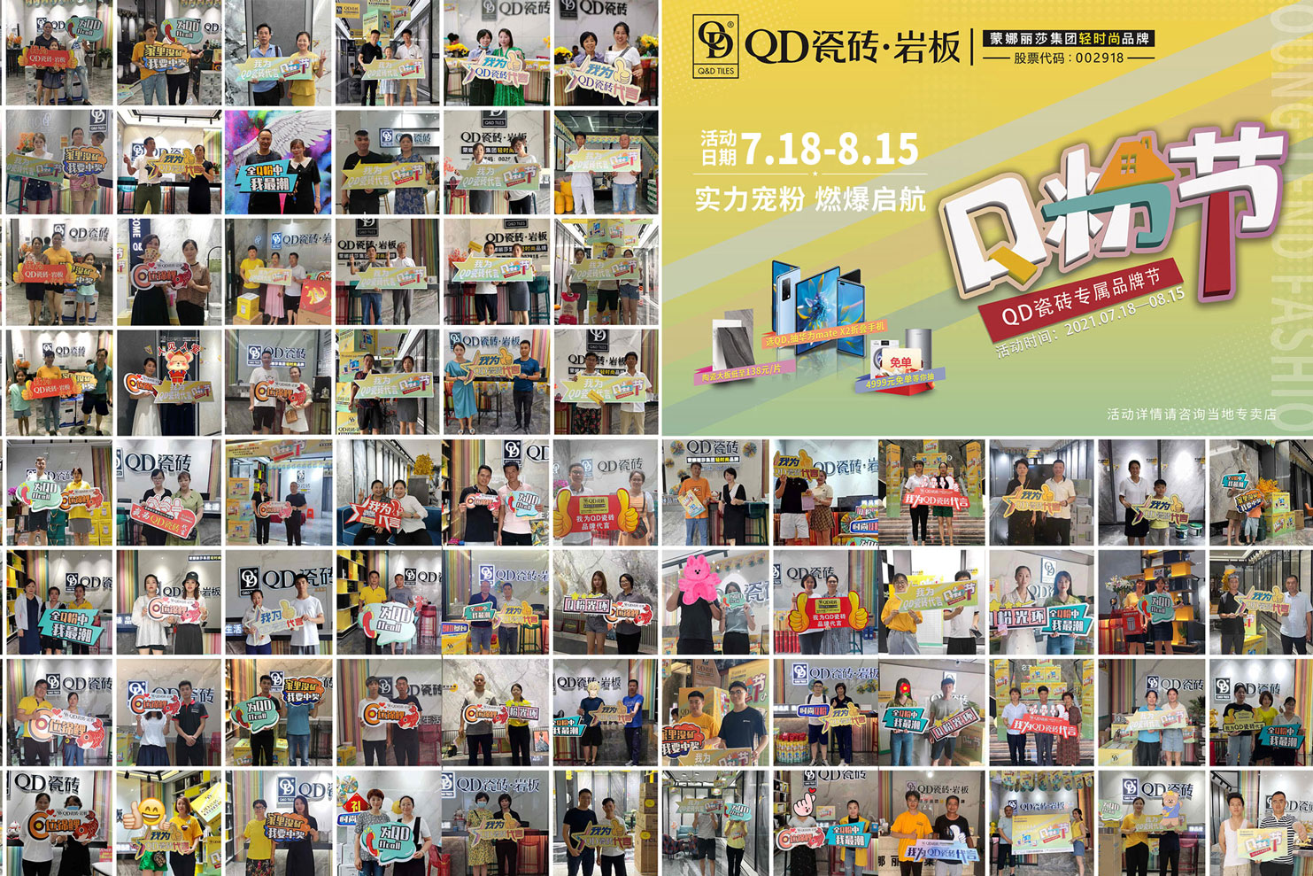 本著“以品質(zhì)為核心,以服務(wù)為根本”的經(jīng)營(yíng)理念,QD瓷磚不斷強(qiáng)化服務(wù)體系,目前已建立起覆蓋全國(guó)的營(yíng)銷網(wǎng)絡(luò)。好風(fēng)憑借力,集團(tuán)公司于2017年在深圳證券交易所A股成功上市,股票代碼:002918。